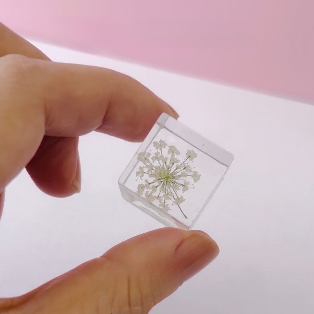 全て手作りで、丁寧に作成していますが、気泡や花の花粉、植物の小さな欠片などが、キューブ内に見られます。